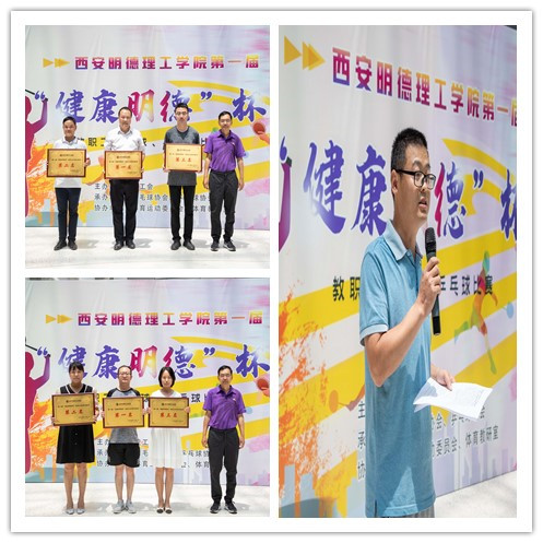 6月30日13:00,在学校明心楼羽毛球场地举行了简约而隆重的闭幕及颁奖仪式,杨健君校长参加闭幕式并讲话,学校党委副书记、工会主席董昊,二级工会及全体参赛队员参加颁奖仪式。