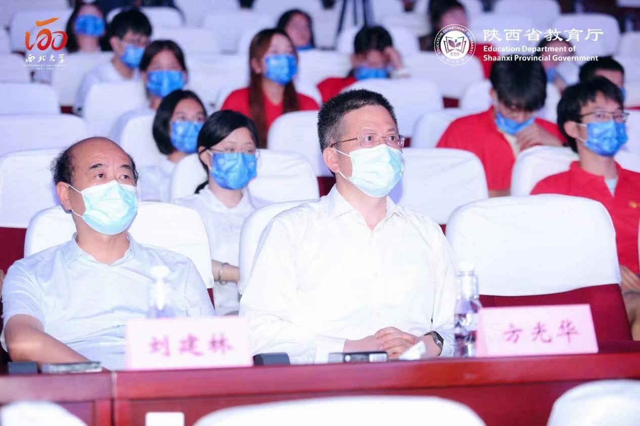 陕西省人民政府副省长方光华出席活动,陕西省人民政府副秘书长张军林,陕西省委教育工委副书记、省教育厅厅长刘建林,省教育厅副厅长高岭等领导及省级优秀毕业生代表、省级优秀学生干部代表、西部基层就业毕业生代表在主会场参加仪式。我校招生就业中心就业办公室全体人员、毕业班辅导员代表、毕业生代表在我校分会场参加仪式。