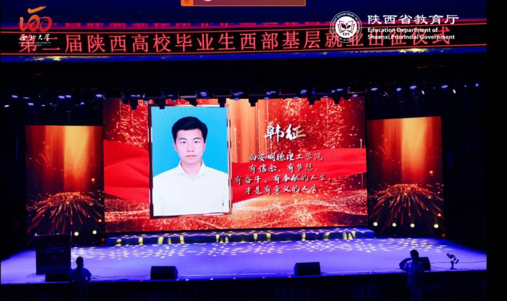“有信念、有梦想、有奋斗、有奉献的人生才是有意义的人生”,7月5日晚,在西北大学长安校区举办的第二届陕西高校毕业生西部基层就业出征仪式上,我校2022届毕业生韩征作为省级优秀学生干部代表受到省教育厅表彰。