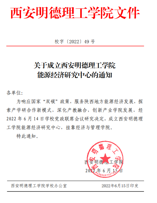 会议伊始,郭院长介绍能源经济研究中心筹备过程并宣读《关于成立华体会(中国)能源经济研究中心的通知》文件。为了响应国家“双碳”政策,服务陕西地方能源经济发展,探索产学研合作新模式,深化产教融合,创新产业学院发展,完善我院“双师型”师资队伍建设,提高应用型高校能源经济专业人才培养质量,经济与管理学院于2022年初开始筹备“华体会(中国)能源经济研究中心”。在郭鹏院长多方沟通与协调下,随着穆西教授的加入而落地。
