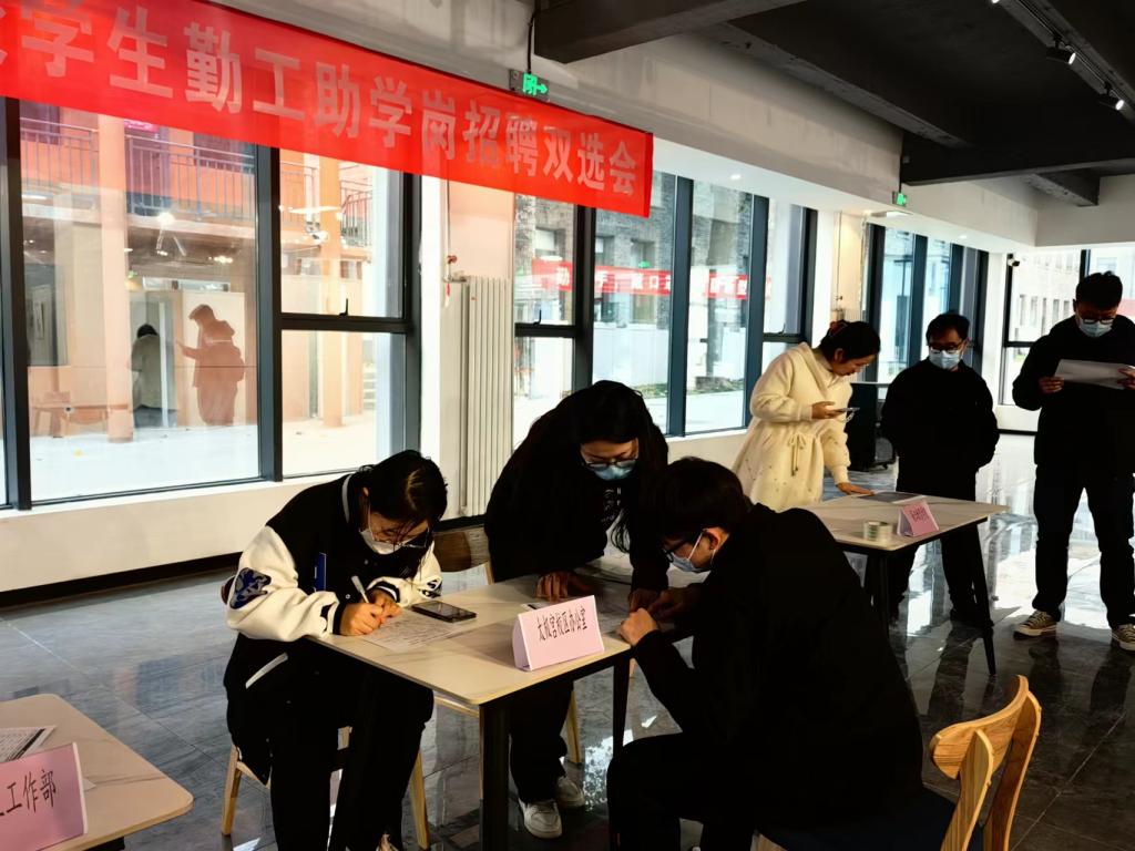 双选会现场气氛热烈、秩序井然,吸引到500余名同学到场参加。学生提前选择意向岗位后,到现场向用工单位投递了勤工助学申请表,并现场了解了用工单位的招聘需求。用工单位负责老师就具体工作内容、时间安排等进行了现场答疑。双选会结束后,用工单位将按照“双向选择、择优入岗”的原则对收集到的勤工助学申请表进行筛选、安排面试,并结合岗位实际情况对录用同学进行岗前培训,帮助各位同学尽快熟悉和适应岗位工作。