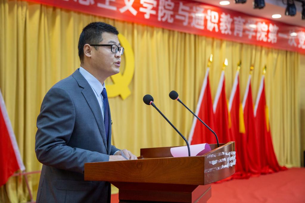 最后,学校党委副书记董昊同志讲话。他对大会的顺利召开和新当选委员表示祝贺,并提出三点要求:第一,全体党员同志要深入学习宣传贯彻党的二十大精神,做到“九个深刻领会”的明确要求,深入推进党的二十大精神进教材、进课堂、进头脑。第二,学院党委委员要加强政治理论学习,提高政治站位,履职尽责、敢于担当,努力提升人才培养质量。第三,学院党委要统筹马克思主义学院和通识教育学院发展,围绕“五育并举”,加强师资队伍建设,强化教育教学质量,激发全体教职工干事创业的积极性、主动性、创造性,为校院发展提供持续动力。