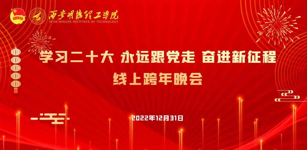 凯歌高奏辞旧岁,一元复始气象新,许下美好的心愿,点亮幸福的明天。2022年12月31日晚,学校举办“学习二十大 永远跟党走 奋进新征程”师生线上跨年文艺晚会。学校领导、全校师生4000余人观看了网络直播,一起在线上共同迎接2023年的到来。