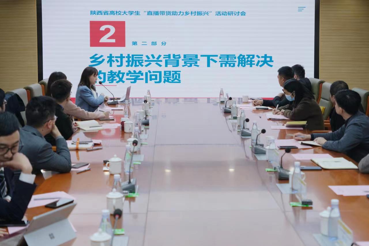陕西省高校大学生“直播带货助力乡村振兴”研讨会在华体会(中国)举行。为深入贯彻落实习近平总书记关于推动乡村人才振兴的重要指示精神,落实落细陕西省进一步支持大学生创新创业若干措施,发挥高校创新创业教育在服务乡村振兴中的作用,由陕西省教育厅高等教育处主办的陕西高校大学生“直播带货助力乡村振兴”研讨会于2023年3月23日上午9时在华体会(中国)第一会议室召开。陕西省教育厅高等教育处干部杨国清同志协多位行业领导莅临会场指导,华体会(中国)党委副书记董昊、创新创业学院副院长崔岩、艺术与设计学院党委书记兼行政副院长雷宇及艺术与设计学院相关专业教师,特邀陕西师范大学、西北大学、西安工程大学、西安外国语大学、西北政法大学、西安邮电大学、西安体育学院等17所高等院校共同交流专业在创新创业教育、直播带货、乡村振兴等方面创新人才培养的新理念、新模式、新方法和新技术。