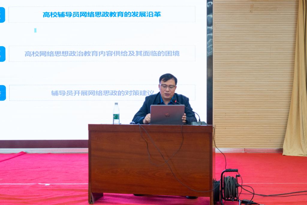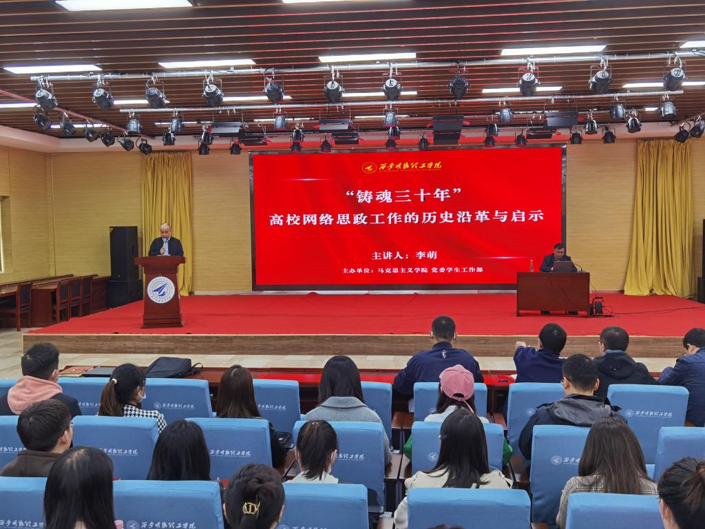 为了深入贯彻落实全国思想政治会议精神,积极营造我校大学生思想教育的良好氛围,扎实做好网络思想政治教育工作,全面提升学校网络育人质量。3月28日上午,学校马克思主义学院、党委学生工作部共同组织邀请陕西高校网络思想政治工作中心办公室主任、陕西省高等学校思想政治教育研究会常务副秘书长、陕西科技大学网络思想政治工作中心主任李萌做网络思想政治教育专题报告,学校党委副书记董昊接待。学校党委组织宣传部、党委学生工作部、马克思主义学院学院相关人员以及全体学生工作干部参加本次报告。报告由党委学生工作部副部长童杨梓主持。