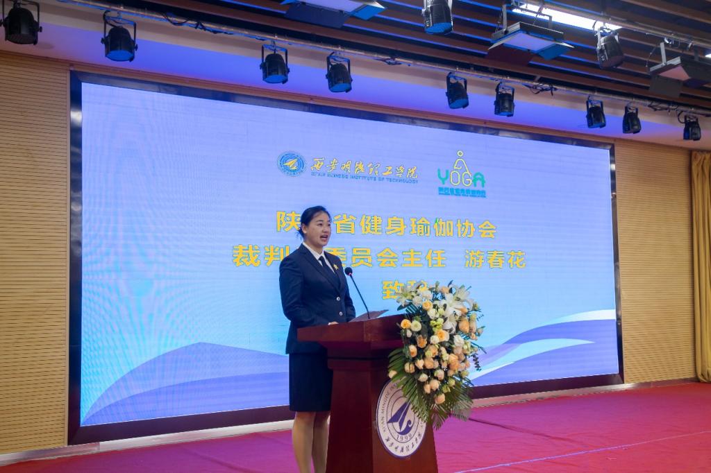 陕西省健身瑜伽协会副主席康莉宣读《关于同意成立陕西省健身瑜伽协会裁判员委员会的批复》与《关于聘任陕西省健身瑜伽协会第一届裁判员委员会委员的决定》,并解读了用人原则与工作原则。