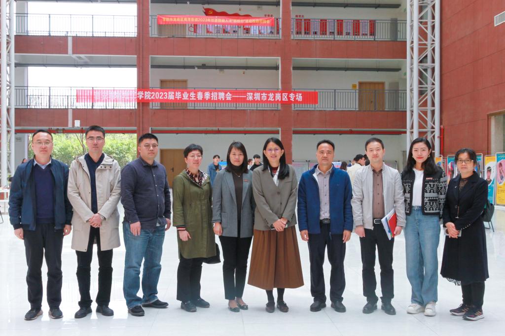 为认真落实教育部《关于开展2023届高校毕业生春季促就业攻坚行动的通知》文件精神,抢抓春季促就业关键期、加快推动我校就业工作进展。3月28日上午,学校与深圳龙岗区在学校第五会议室召开政校企合作交流座谈会。龙岗区龙城街道办党工委委员余秋婵及南湾街道公共事务中心主任黄国胜等7人、学校招生就业中心副主任王东辉、各学院党委书记参加了座谈会,会议由信息工程学院党委书记肖千春主持。