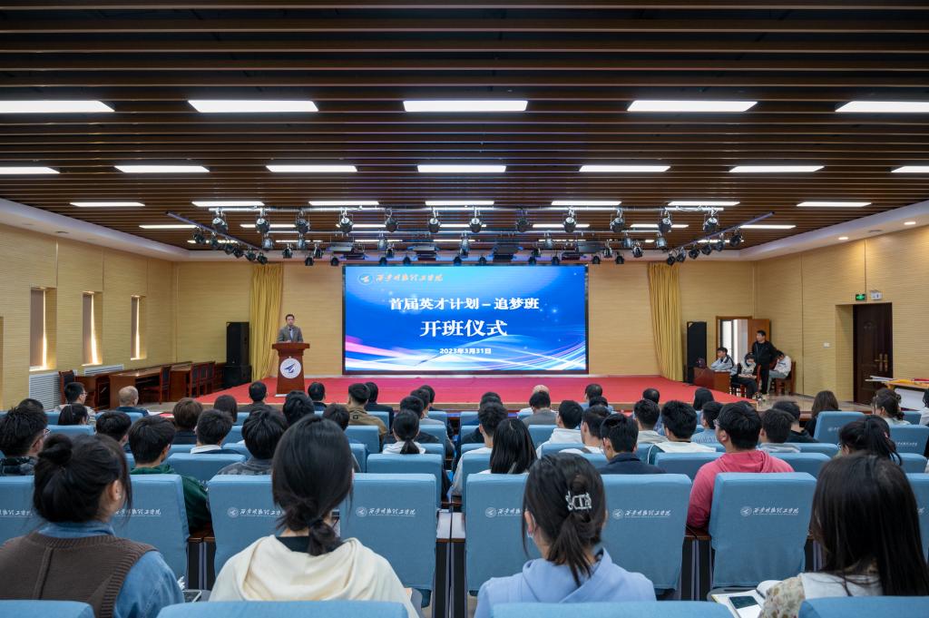 绿色校园沐春风,英才追梦启新程。3月31日下午,学校在建德楼203报告厅隆重举办英才计划“追梦班”开班仪式。校党委副书记董昊,人力资源处处长白秦川,科研与校企合作处副处长周强,教务处副处长文亮,党委学生工作部副部长童杨梓,创新创业学院副院长崔岩,各二级学院党委书记、副书记出席会议,95名首届英才计划“追梦班”学员参加会议。会议由党委学生工作部王飞主持。