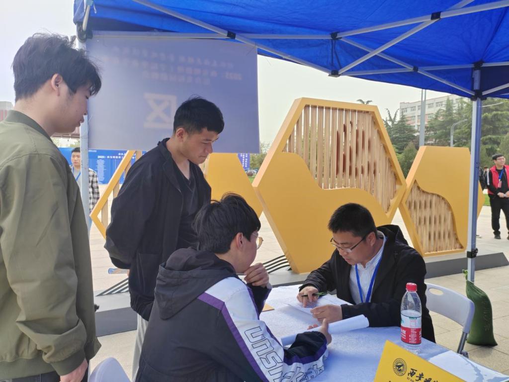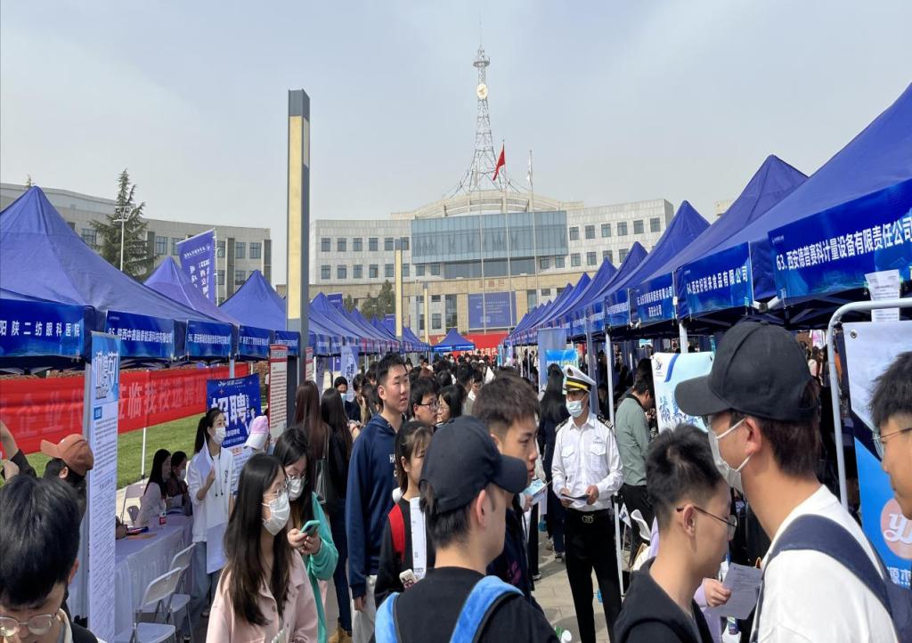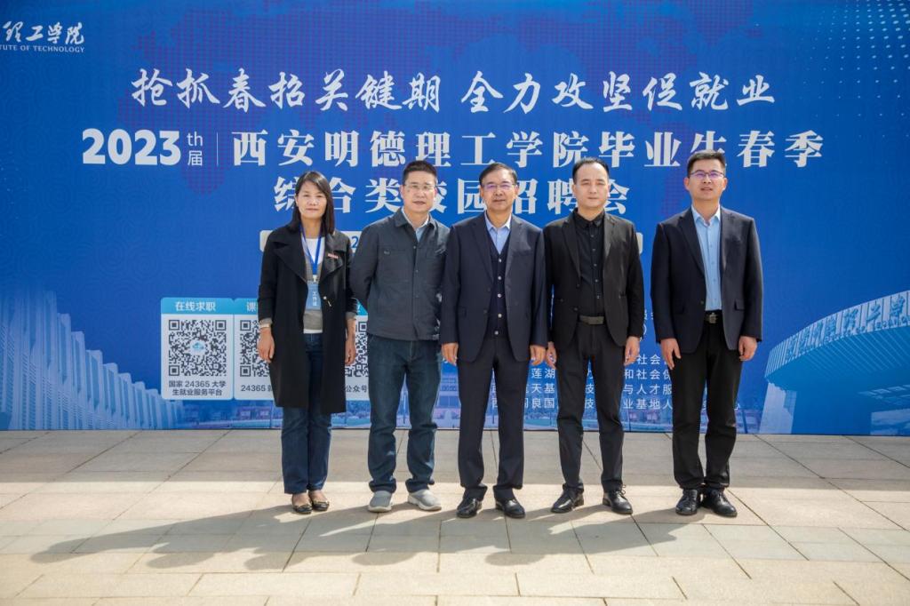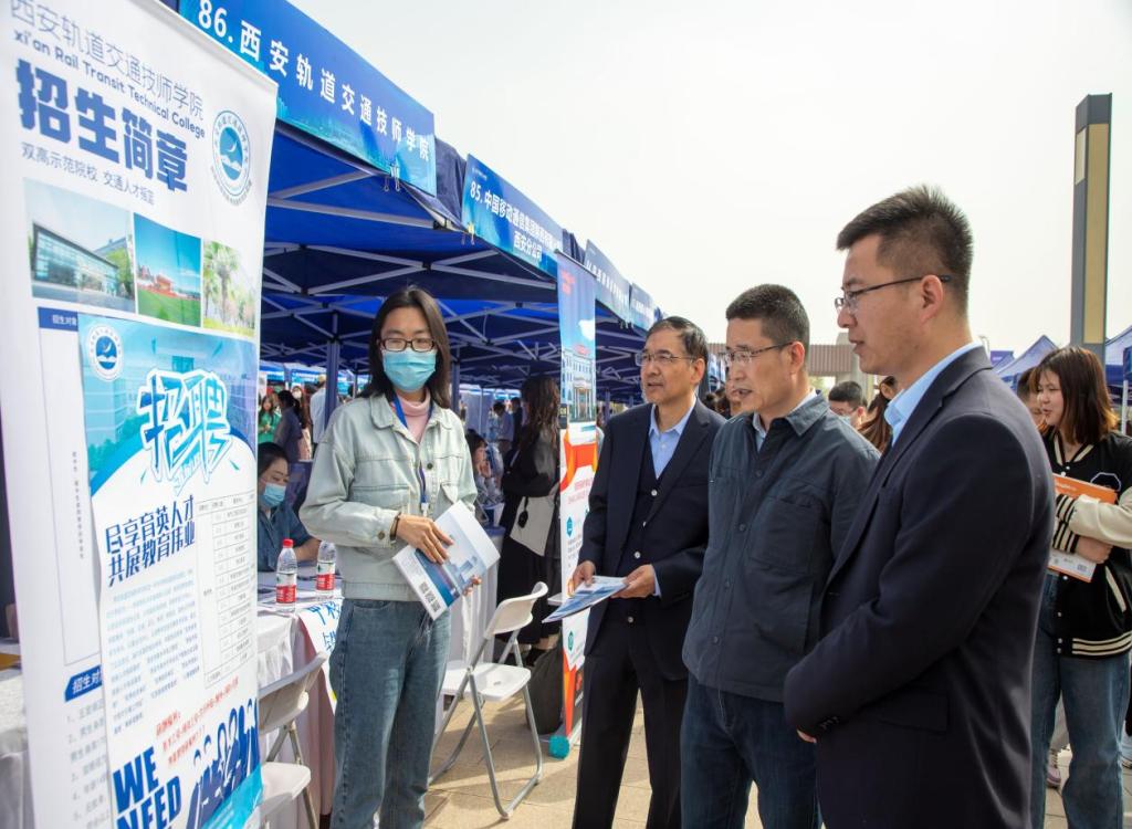 为深入贯彻落实党的二十大精神和党中央、国务院“稳就业、保就业”决策部署,响应教育部“抢抓春招关键期,全力攻坚促就业”号召,拓宽毕业生就业渠道,搭建广大毕业生与优质用人单位的双向选择平台,促进毕业生更充分更高质量就业,4月12日上午我校成功举办了由陕西省教育厅、中国西安人才市场管理委员会办公室(陕西省人才交流服务中心)指导、我校主办、西安市长安区人力资源和社会保障局、西安市莲湖区人力资源和社会保障局、西安航天基地科技创新与人才中心、西安阎良国家高新技术产业基地人才服务中心承办的2023届毕业生春季校园综合招聘会。陕西省教育厅二级调研员白炀、高校毕业生就业服务中心陈靖莅临我校考察指导,校长杨健君、副校长刘星对莅临领导表示热烈欢迎并到会与企业招聘代表进行交谈,了解企业基本信息、招聘岗位,学生应聘等情况。