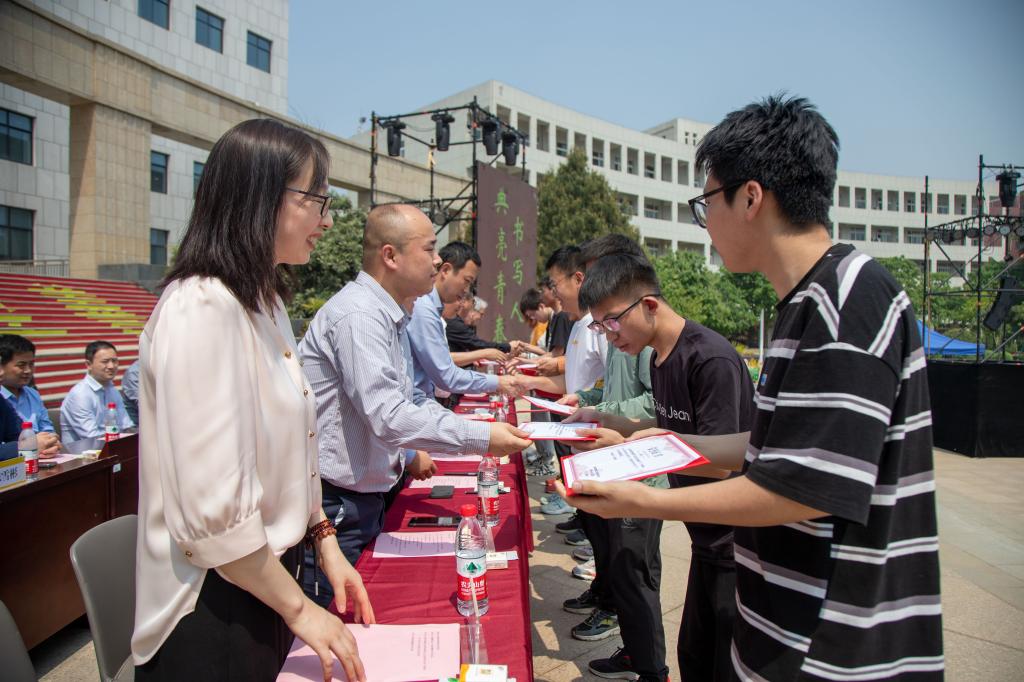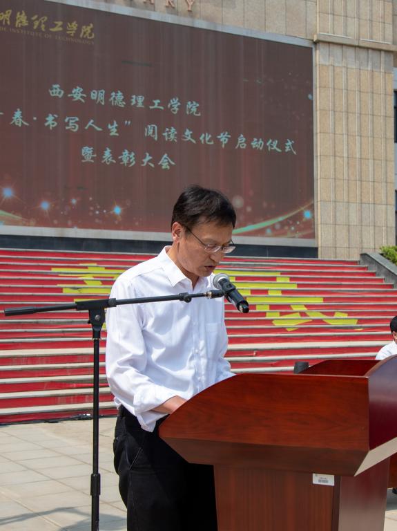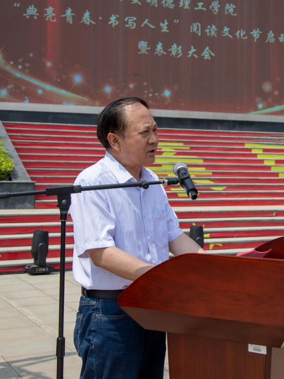 常务副校长王志刚以“你若读书,风雅自来”为主题作了讲话,王校长说好的书籍蕴含着巨大的能量——滋养思想,鼓舞精神,指引行动,读书不仅对个人综合素质的提升,对创新意识、创新精神的培养,对科学的学习方法和优良学风的形成具有十分重要的作用,而且也是打破局限,获得更加豁达与平和心态的一种方法,呼吁同学们要珍惜美好大学时光,以时不待我、只争朝夕的精神,制定读书计划——既要精读专业书籍,也要博览群书,坚定文化自信,多读中国传统文化,尤其是明德文化方面的经典,养成“爱读书,善读书,读好书”的好习惯,立志做有理想、敢担当、能吃苦、肯奋斗的新时代好青年,让青春在全面建设社会主义现代化国家的火热实践中绽放绚丽之花。