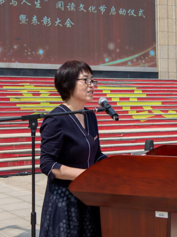 为深入学习贯彻落实党的二十大精神,加强学风建设,扎实推进“书香校园”建设工作,充分发挥图书馆文化育人阵地作用,2023年4月19日上午,图书馆在学校中心广场隆重举办“典亮青春·书写人生”阅读文化节启动仪式暨表彰大会。校长杨健君、常务副校长王志刚、党委副书记董昊、职能部门负责人、二级学院领导、图书馆职工及获奖学生出席了本次大会,会议由图书馆副馆长强丽丽主持。