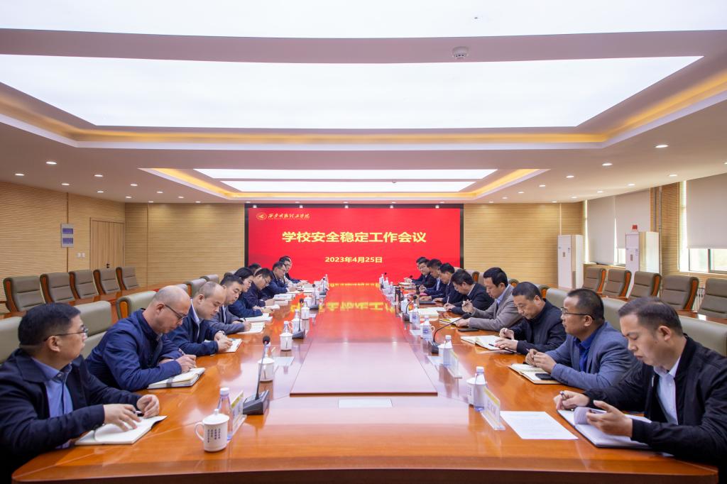 4月25日上午,学校召开安全稳定工作会议,会议由校长杨健君主持,副校长王斌宁传达全省教育系统安全稳定工作会议精神,学校党委书记阎东明安排部署学校安全稳定重点工作,学校有关职能部门(单位)负责人,以及各二级学院党委(党总支)书记参加会议。
