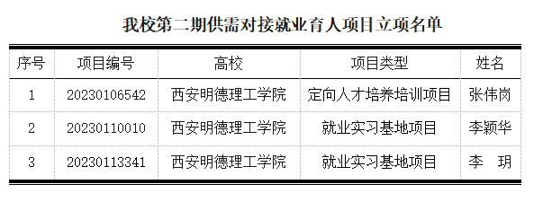 近日,教育部高校学生司发布《教育部高校学生司关于公布第二期供需对接就业育人项目立项名单的通知》(教学司函〔2023〕6号),我校与3家企业对接合作的3个就业育人项目获教育部批准立项。此次立项也是我校首次参与获批。