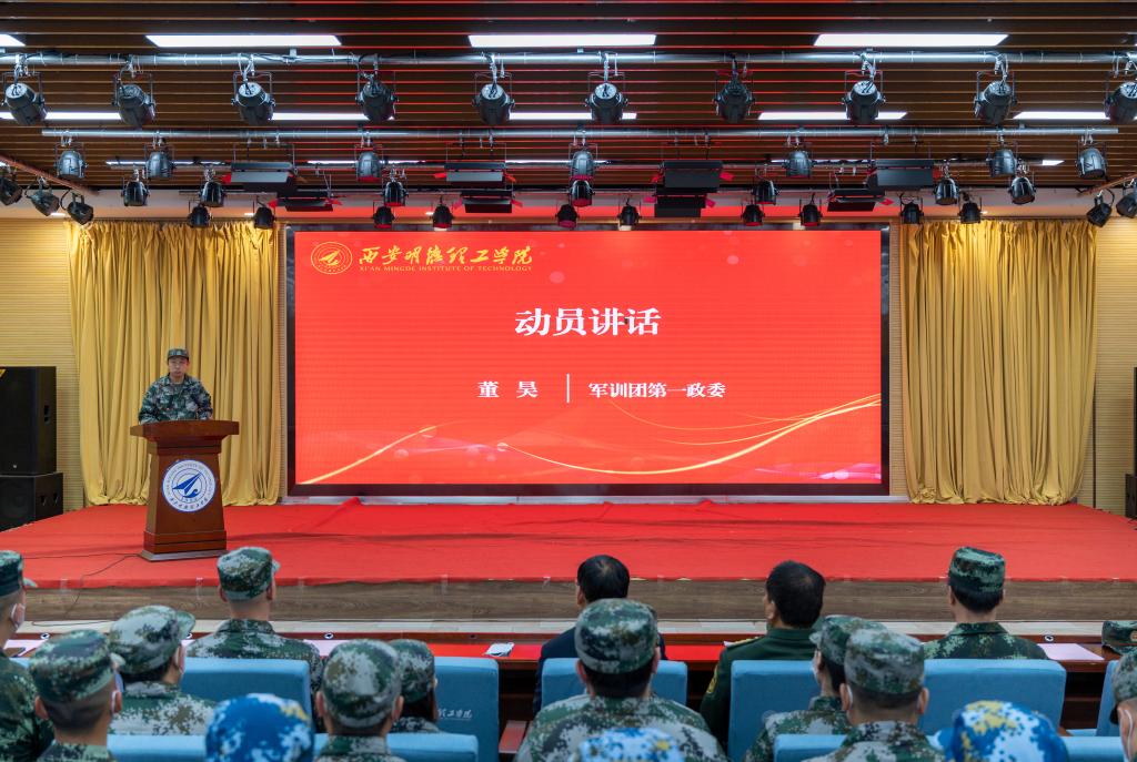 董昊做动员讲话,他指出,报效祖国、抵抗侵略是每一个公民的神圣职责,开展军训工作是国防后备力量建设的重要措施,祖国的未来寄托在青年一辈,希望全体参训同学胸怀家国情怀、弘扬爱国主义精神,保持饱满的热情和高昂的斗志,不怕吃苦,刻苦训练,服从指挥、令行禁止,以军人的标准投入到军训中,培养艰苦奋斗、吃苦耐劳的作风,磨练意志品质、提高综合素质。希望全体军政干部密切配合、科学施训、牢固树立安全意识,从严管理、关心爱护好参训学生,切实落实各项安全措施,保障学生们在军训中有所收获、有所成长。
