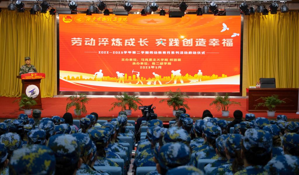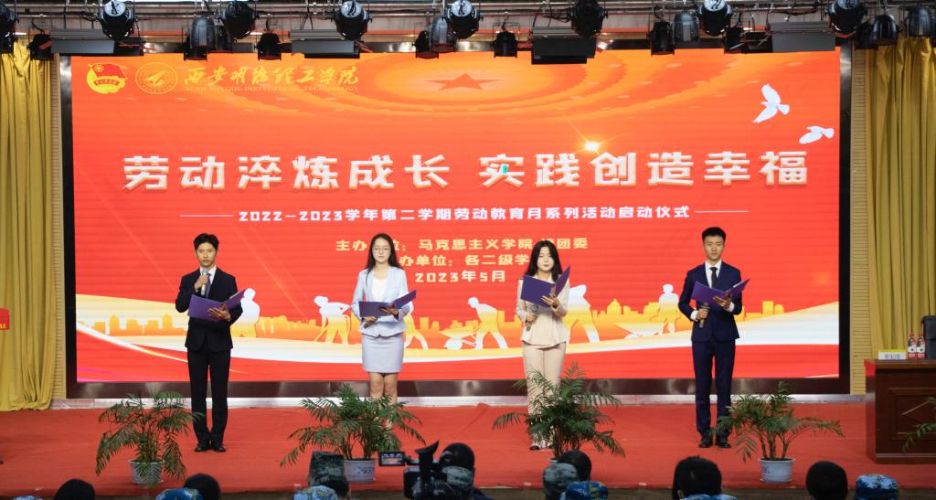 启动仪式上,党委学生工作部副部长兼校团委书记童杨梓宣读了《关于举办2022-2023学年第二学期劳动教育月系列活动的通知》。沣河校园广播站带来朗诵《劳模礼赞》,慷慨激昂地赞美了新时代新征程上所有在平凡的岗位上坚持奉献的劳动者。