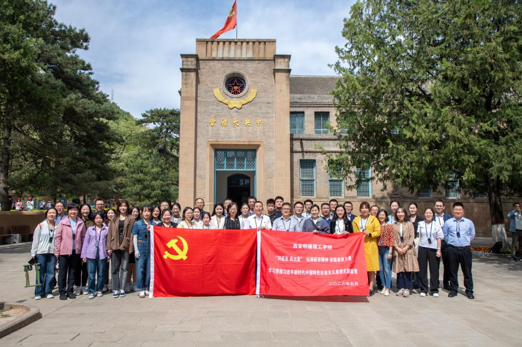 在扎实开展学习贯彻习近平新时代中国特色社会主义思想主题教育之际,为全面推进学校“大思政课”体系建设,用党的创新理论铸魂育人,5月13-14日,学校与延安艰苦奋斗红色文化培训中心、延安革命纪念馆、杨家岭革命旧址、中共中央西北局纪念馆、凤凰山麓革命旧址、陕甘宁边区政府旧址、延安南泥湾革命旧址、延安鲁艺文化中心、洛川会议纪念馆共建“大思政课”实践教学基地揭牌仪式在延安举行。各革命旧址负责人、学校领导、各基层党组织书记、部分党员参加活动。