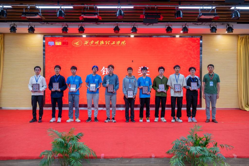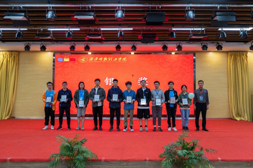 经过5个小时的激烈角逐,7个参赛队获金奖、20个参赛队获银奖、30个参赛队获铜奖,其中来自西安交通大学、西安电子科技大学、西安理工大学获得团队成绩前三名,我校“下雨有点腿疼总不能是风湿吧”队获得大赛铜奖。