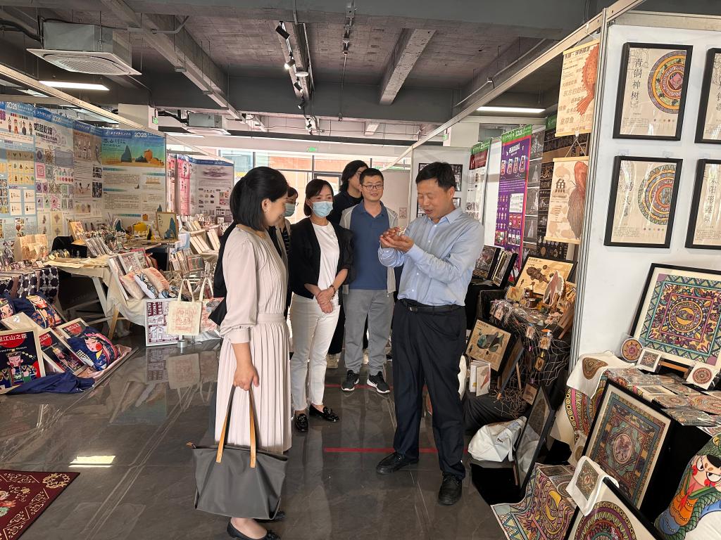 参观过程中,徐主席仔细观看学生设计作品,了解每一个展品的设计理念、创作背景和实用价值,并与师生进行了亲切交流。在交流中,徐富权主席对我校艺术专业学生的教育模式给予充分肯定,他希望同学们在毕业之后能够保持良好的精神状态,发挥专业特长,不断提升设计能力,将所学运用到实际工作中,真正做到学以致用、服务社会。