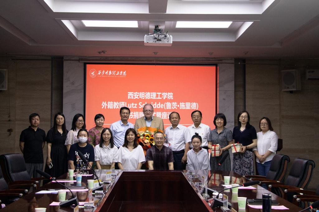 在座谈交流过程中,Lutz Schridde(鲁茨•施里德)先生从中德文化差异、中德教育教学管理差别等方面对我校教育教学工作提出了宝贵意见与建议,对明德学生的求学态度及精神面貌予以高度肯定和赞扬,先生表示:回德后会继续关注明德发展,愿意为中德高等教育事业发展继续发挥余热。同时,先生也表示,回德后会继续采选适合中国大学生阅读的德文原版图书,寄给我校图书馆,一定要完成自己预期捐赠500册图书的目标。
