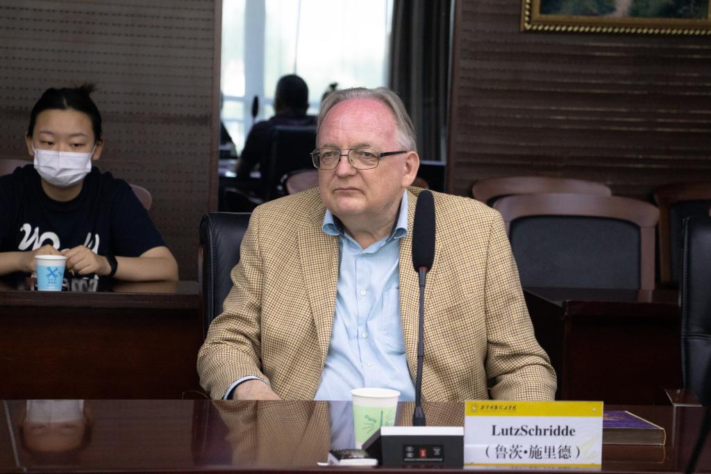 为了表达学校对外籍教师Lutz Schridde(鲁茨•施里德)先生从教数十载的贡献及捐赠行为的衷心感谢与崇高敬意,6月14日下午,学校在图书馆407会议室隆重举行外籍教师Lutz Schridde(鲁茨•施里德)图书捐赠仪式暨座谈会。会议由图书馆(档案、校史馆)馆长王爱霞主持,常务副校长王志刚、人力资源处处长白秦川、国际教育学院院长兼外事办公室主任于艳英、语言文化传播学院院长马庆林、德语专业负责人王勇、德语专业专职教师张露、陈婧、刘无双、张阳及外事办公室、图书馆等相关老师20余人参加了座谈会。