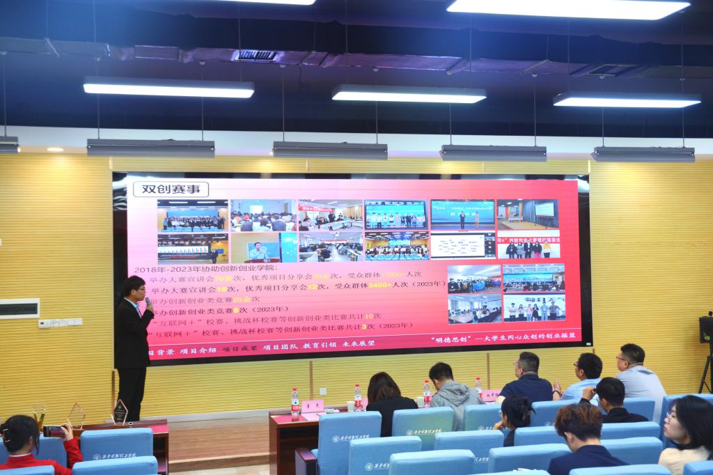 大赛自2023年5月启动以来,学校高度重视,创新创业学院精心组织,各学院通力配合,指导教师悉心指导。经过广泛宣传、积极动员,最终有30个项目晋级校级决赛。决赛分为上午和下午两个场次,比赛分项目展示和评审答辩两个环节,每个项目PPT路演时间6分钟,评审提问时间4分钟。各参赛队伍积极准备,主要从项目背景、项目简介、行业痛点、产品/服务创新、商业模式、财务分析、团队介绍等方面来进行展示,并与评审专家进行问答互动,充分展现了我校学子“敢闯会创”的良好风貌。