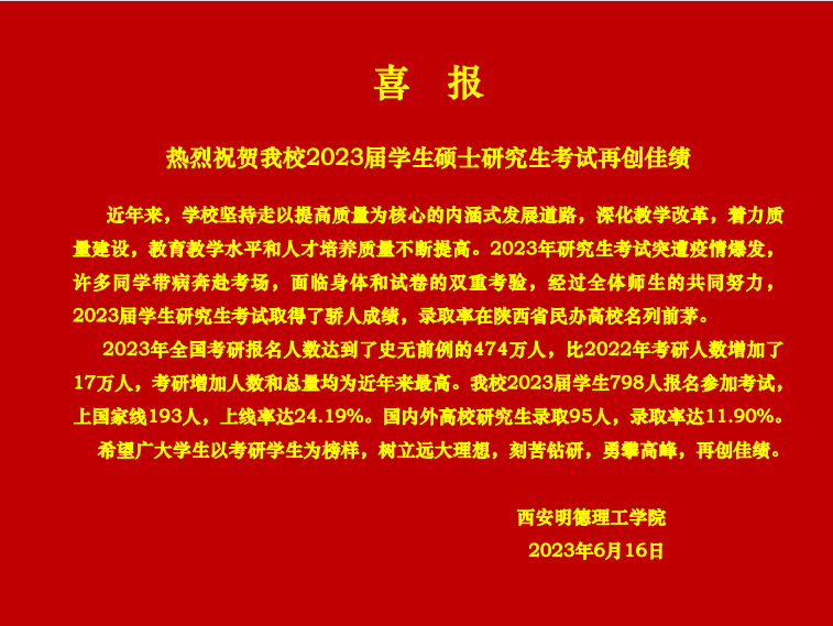 喜报!热烈祝贺我校2023届学生硕士研究生考试再创佳绩