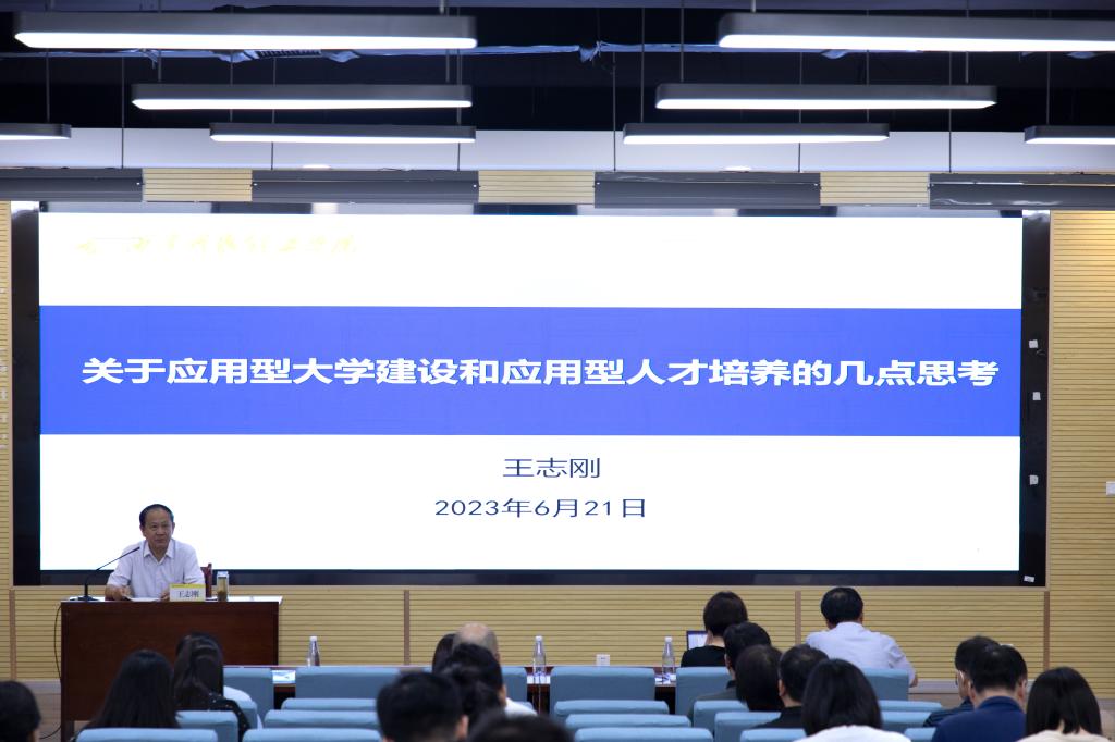 王志刚常务副校长在报告中指出,党的二十大报告关于教育、科技、人才“三位一体”的重要论述,为新时代高校工作指明了方向。高校作为科技第一生产力、人才第一资源、创新第一动力的重要结合点,在国家现代化进程中,责任重大。他围绕“建设什么样的大学,如何建设”“培养什么样的人,为谁培养,如何培养”这两大命题,从“深入研究准确把握应用型大学和应用型人才的基本特征和核心内涵”“建设应用型大学、培养应用型人才的路径选择”两个方面,深刻阐释了应用型大学的基本特征与核心内涵、应用型人才的基本特征与核心内涵,系统回答了如何建设应用型大学、如何培养应用型人才,提出了价值塑造、能力培养、知识传授、实践锻炼、素质提升“五位一体”的应用型人才培养体系及实现路径。报告视野广阔,内容丰富,既有理论深度,又富有实践指导意义。