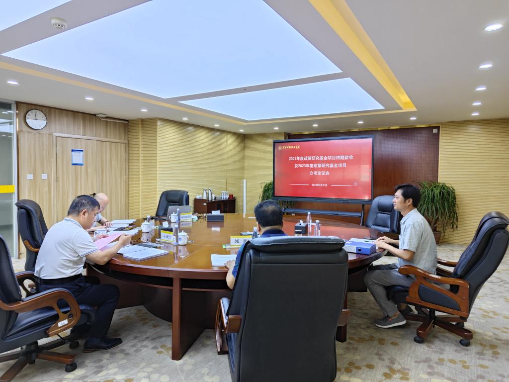 为鼓励教师积极参与项目研究并发掘高质量政策研究基金项目,6月21日上午,规划发展与协调处组织召开了2023年度政策研究基金项目立项论证会,会议邀请学校副校长王斌宁担任评审组组长,经济与管理学院院长郭鹏、科技处副处长周强担任评审专家。