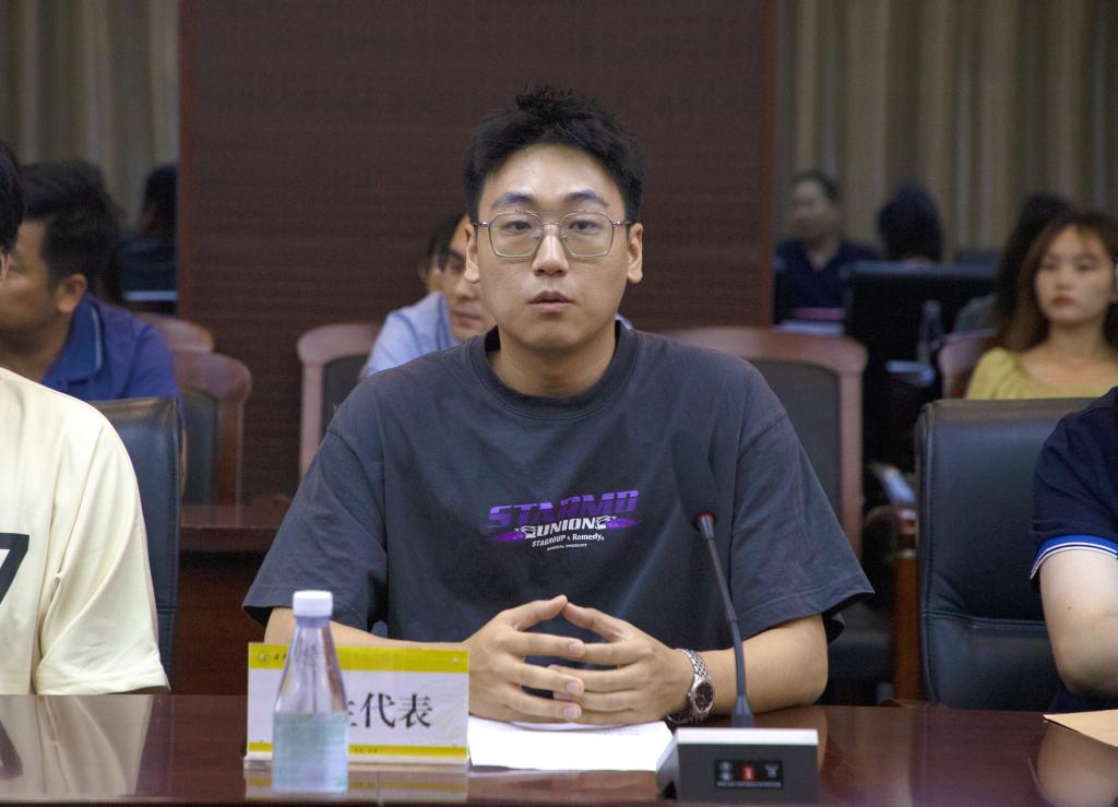 来自5个学院的6名学生代表畅所欲言,分享了自己在学业、个人成长等方面的收获与感悟,表达了对母校和老师精心培养的感激之情和对未来新征程的向往。同时他们结合自己在学校的学习生活经历,对学校人才培养、学科专业建设、生活服务等方面建言献策,并祝母校越办越好。语言文化传播学院党委书记赵旭东同志作为教师和辅导员代表发言并对学生表达了殷切希望。