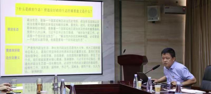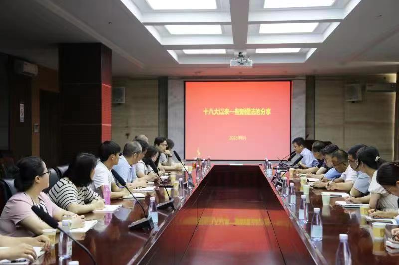 为深入学习贯彻习近平新时代中国特色社会主义思想主题教育,提高全体党员的思想认识,6月26日上午,校党委委员、副校长王斌宁同志在明德楼407会议室以《党的十八大以来一些新提法的分享》为主题,给机关第五党支部全体党员、入党积极分子及第五党支部所辖的相关单位处级领导干部上了一场生动有趣味的党课。机关第八党支部书记强丽丽带领支部党员参加了学习。