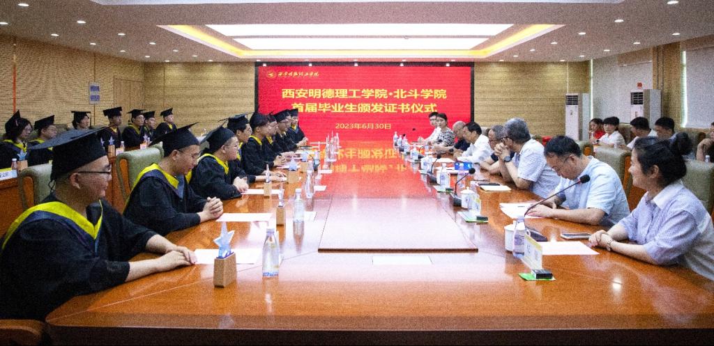 仪式上,学校领导、北斗学院特聘专家、共建及合作单位负责人和教师代表共同见证了这一重要时刻,并为每位毕业生亲手颁发了代表北斗学院首届毕业生的、刻有北斗图案的证书,同时向他们表示祝贺和祝福。