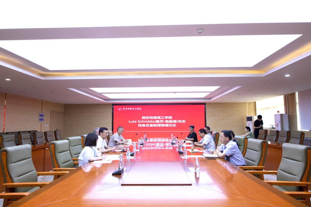 杨健君校长对Lutz Schridde(鲁茨•施里德)先生在我校任教以来做出的诸多贡献表示感激;对先生即将离开我校表示不舍;对先生在返回德国故乡前被聘请为我校终身名誉教授表示欣慰。他希望先生回国后能够继续关注明德,关注西安,关注中国。