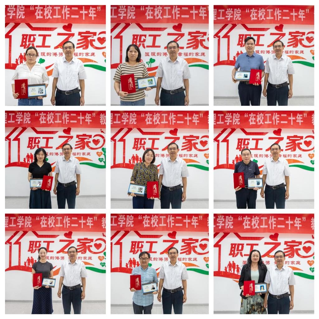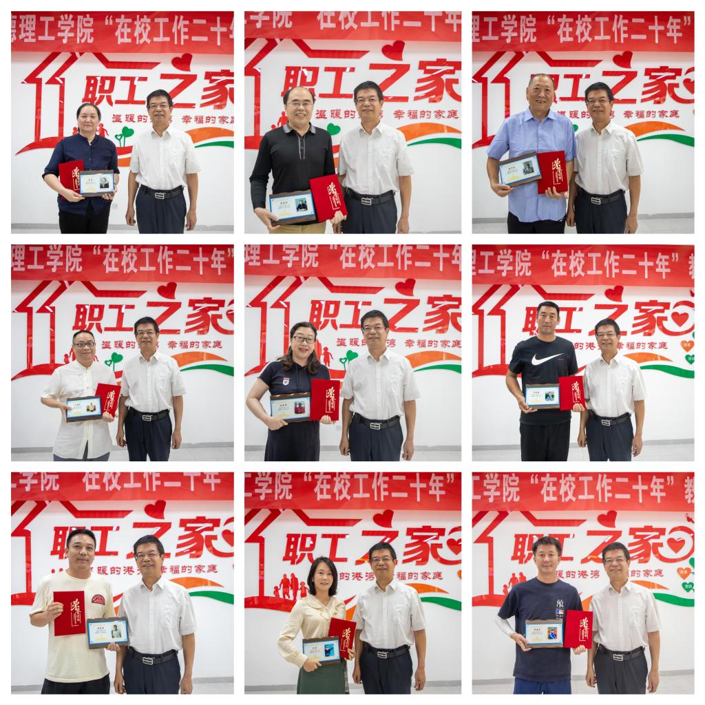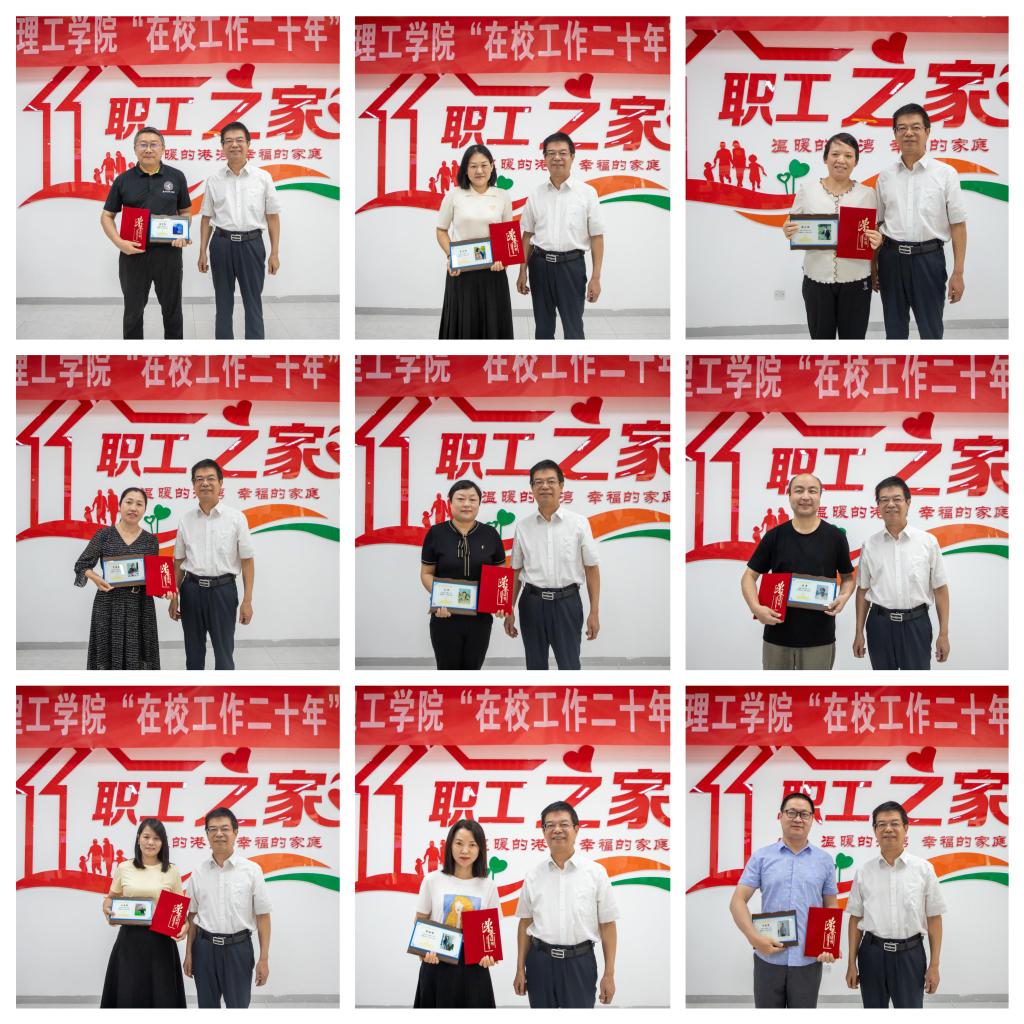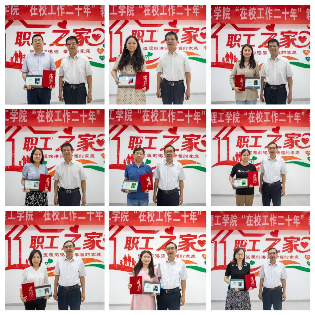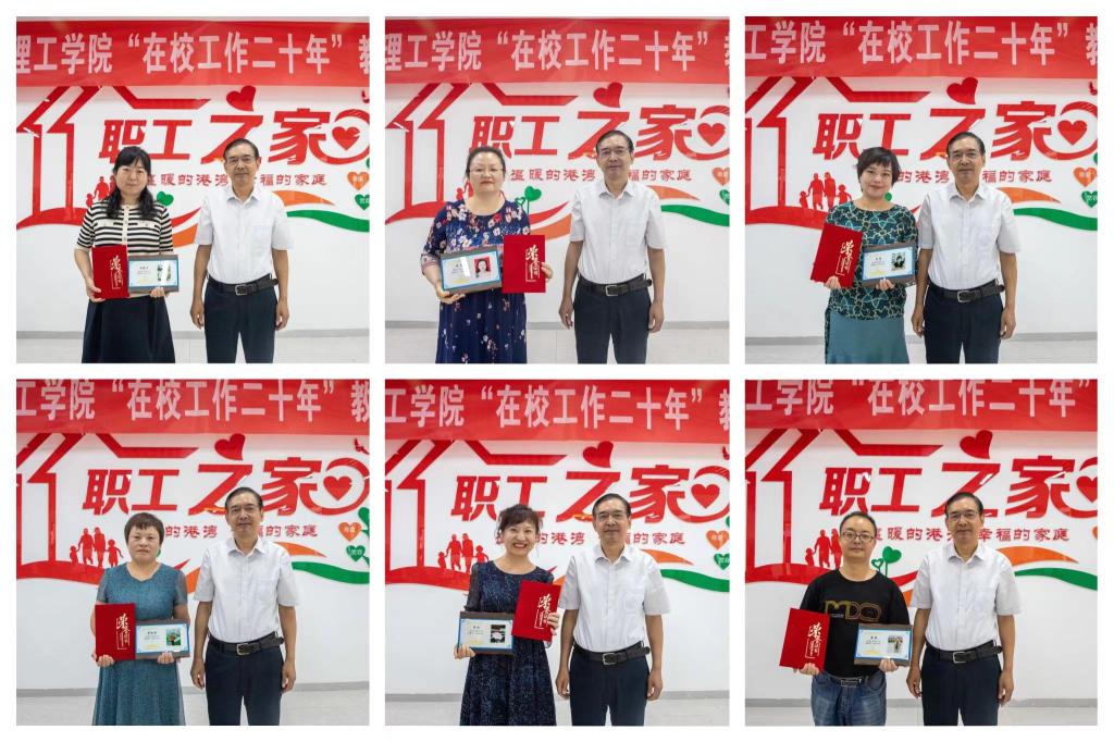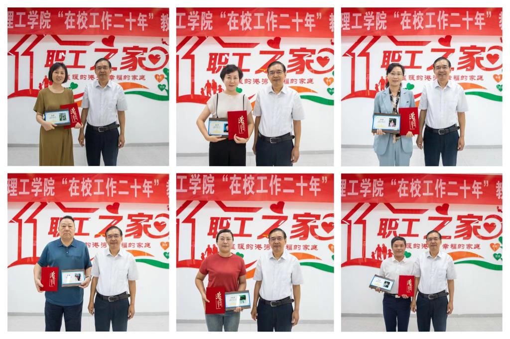 董昊宣读了《华体会(中国)工会委员会关于表彰在校工作20年教职工的决定》。阎东明、杨健君分别为在校工作20年以上的教职工一一颁发奖牌和荣誉证书。同时为在校工作15年以上教职工代表颁发了荣誉证书。
