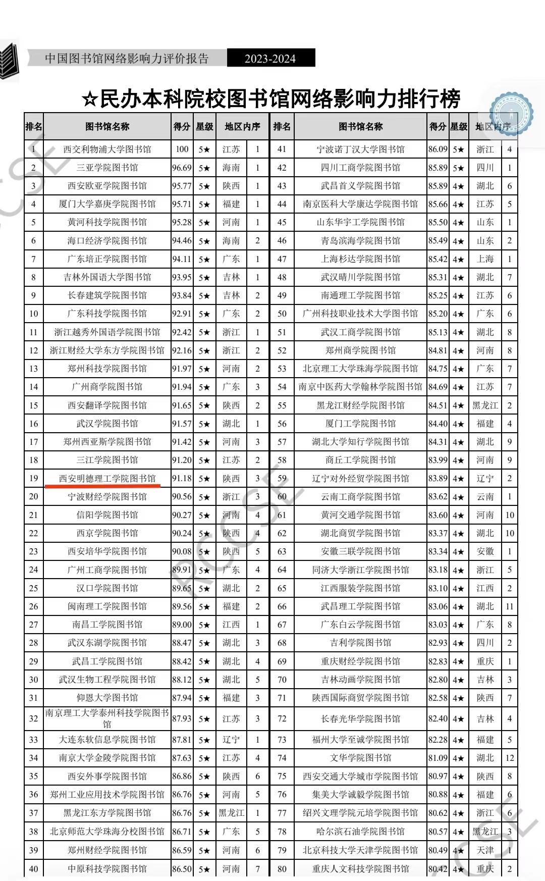 华体会(中国)图书馆在本报告中获评5★图书馆,在全国397所民办本科院校图书馆网络影响力排名第19,陕西省民办本科高校图书馆网络影响力排名第3。