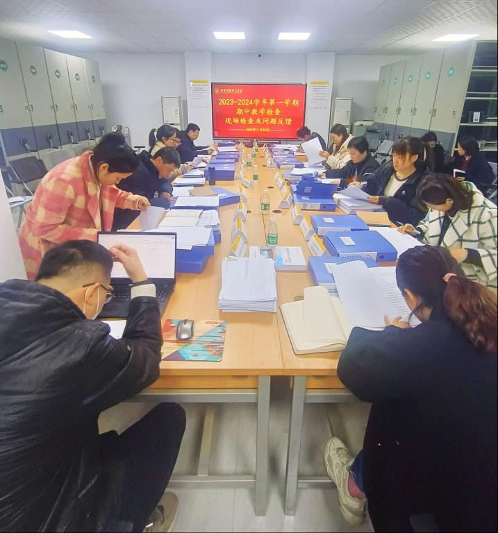 学校检查组依照《2023-2024 学年第一学期期中教学专项检查工作指标体系》以及《2023-2024学年第一学期期中教学检查随机抽检清单教案抽检清单》对学院资料进行检查。质量管理与评估办公室李海峰教授对本次检查工作进行了细致地反馈,指出学院对于《2023-2024学年第一学期期中教学专项检查工作指标体系》理解比较透彻,肯定了学院资料整理的细致与完整,同时也指出了学院在相关资料整理方面的不足。