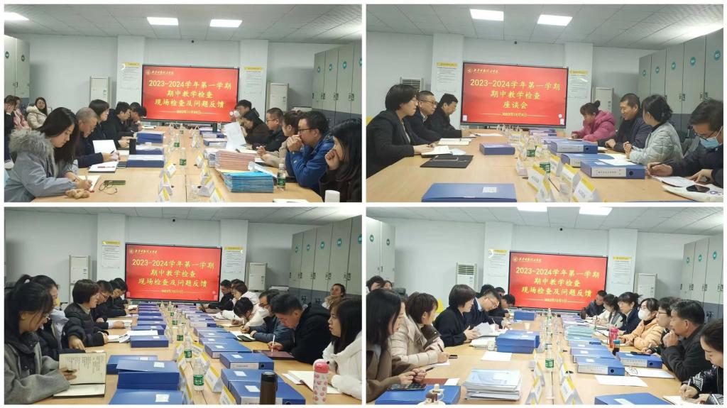 为全面了解和掌握各教学单位本学期的教学运行情况,加强教学质量监控过程管理,进一步提升我校人才培养质量,根据学校《关于开展2023-2024学年第一学期期中教学检查工作的通知》(校教字〔2023〕46 号)、《关于开展 2023-2024 学年第一学期期中教学检查-学校检查工作安排的通知》(校教字〔2023〕53 号)文件要求,学校检查组对各教学单位2023-2024学年第一学期的前半学期教学情况进行了全方位的检查。参加检查工作的还有各二级学院、教学相关处室的领导及全体专业负责人。