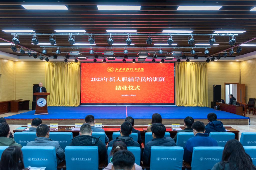 为进一步加强辅导员队伍职业化、专业化、专家化建设,帮助新入职辅导员了解岗位需求、明确职责定位、提升履职能力、坚定职业理想,按照学校《关于进行2023年新入职教职工培训的通知》文件要求,党委学生工作部联合学校人力资源处、教师发展中心组织开展2023年新入职辅导员培训工作。12月6日,学校在建德楼203报告厅组织召开了2023年新入职辅导员培训班结业仪式,学校副校长白秦川、副校长刘星、教师发展中心副主任郝丽静、党委学生工作部副部长童杨梓、各学院党委书记、副书记以及全体学生工作干部参加结业仪式。