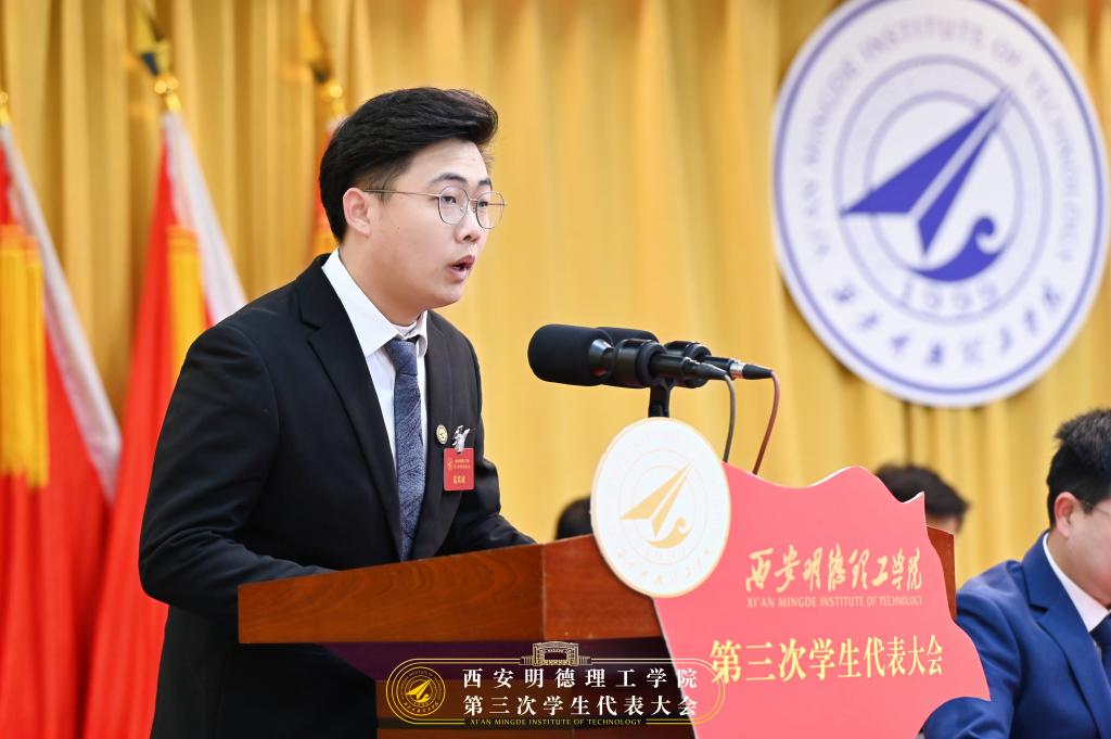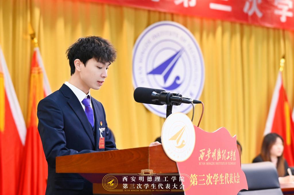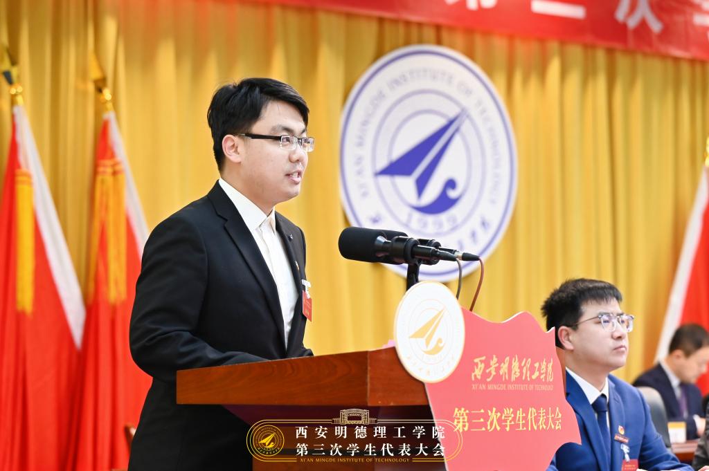 校学生会主席团成员焦磊同学作《华体会(中国)第三次学生代表大会提案工作报告》。