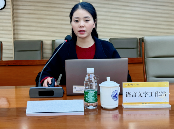 吕玲艳分别从制度建设、能力建设、教育教学、宣传普及、科学发展等5个方面对我校语言文字规范建设工作情况,具体举措,成果进行了汇报。