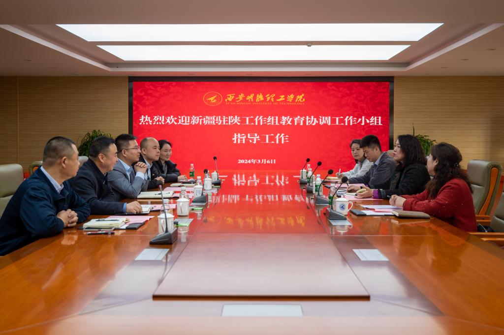 3月6日新疆驻陕西省教育协调工作组党委副书记王瑛、教育协调小组成员徐静、刘帅一行来我校调研指导少数民族学生教育服务管理工作。学校党委副书记、副校长刘星与党委学生工作部、相关二级学院负责人、新疆籍派驻教师参加了会议,会议由童杨梓主持。