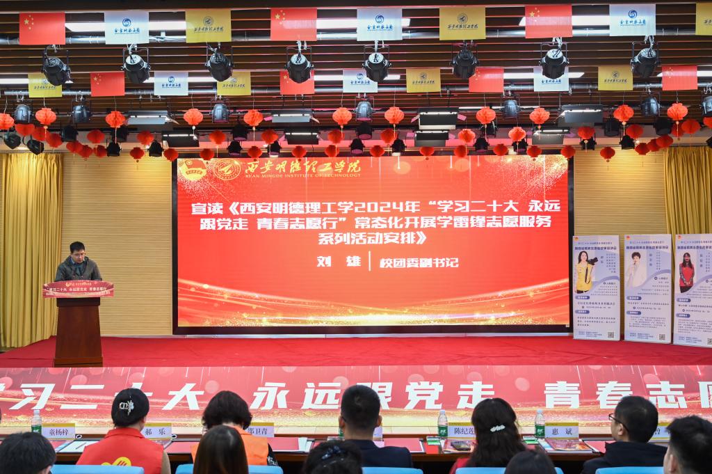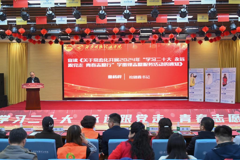 校团委副书记刘雄宣读了《2024年“学习二十大 永远跟党走 青春志愿行”常态化开展学雷锋志愿服务系列活动安排》。