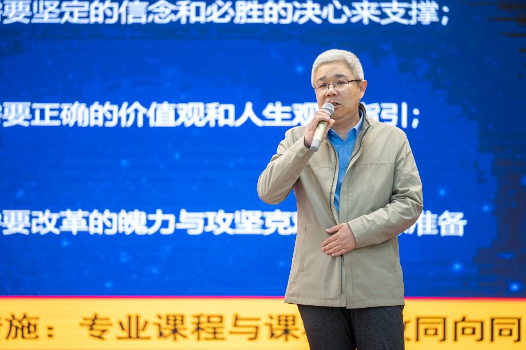 王俨剀副教授以深厚的学术底蕴和丰富的实践经验,以飞行器动力工程专业为例,围绕“课程思政与思政课程同向同行的建设思考”,从研究背景、数据分析、实践内容和结论与推广等四个方面进行了分享。他从新时代学生特点出发,强调在课程思政建设中要创新开展有温度的课程思政。他分享了自身教学改革的思路和尝试,提出教师需要结合专业知识讲授,促进学生的思想进步;应鼓励学生用熟悉的思维方式去思考问题;学校应鼓励新手段、新技术、新平台,促进文工融合,理工融合,医工融合。课程思政建设只有做到“需求之新、形式之新、行动之新、理念之新”,才能更好服务于学生成长成才。王俨剀副教授致力于探索工科课程思政的建设方法和创新实践,以提高学生的综合素质和实践能力,这种坚持探索、不断创新的精神让在场的师生心生敬佩,由衷感动,讲座结束时全场热烈的掌声经久不息。