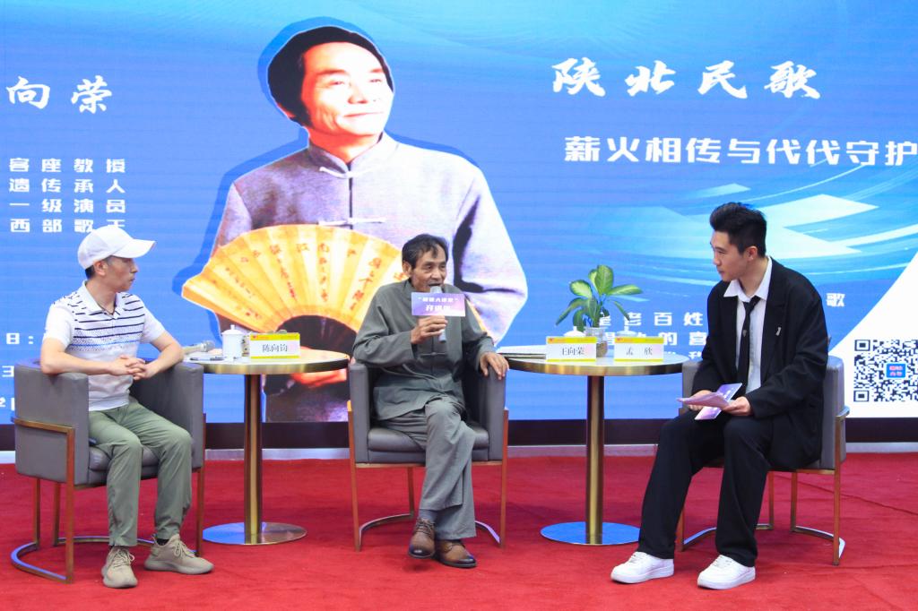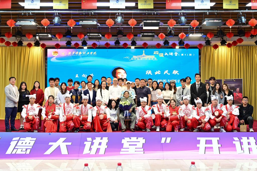 此外王老师还为学生们讲述了陕北民歌的革命化历程,并演绎了《东方红》由民间歌曲到革命民歌的转化过程,学生们无不感慨民间艺术的博大与包容。访谈期间,主持人谈到最喜欢的哪一首陕北歌曲时,王向荣老师说道,民歌,是老百姓自己的歌,唱他的喜怒哀乐,唱他的酸甜苦辣。他喜欢每一首陕北民歌。并指出,虽然已经70多岁的年龄,他还将大力弘扬陕北民歌,传承保护好陕北民歌,以丰富多样的形式表现陕北民歌,不断推动陕北民歌的创新发展,同时要不断深入生活,从当下火热的生活实践出发,努力创作出无愧于时代、无愧于人民的民歌作品。