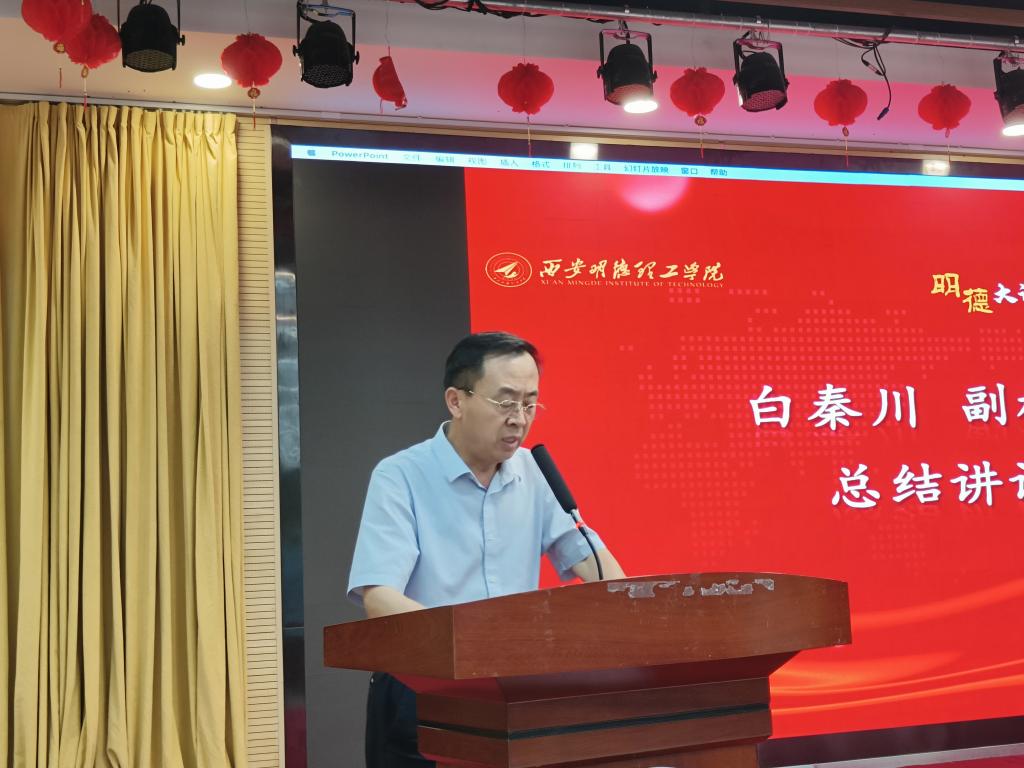 最后,白秦川副校长做总结讲话。他认为,国学经典作为中华民族传统文化的重要组成部分,蕴含着先贤们的深邃思想和崇高精神,是我们民族文化的瑰宝,也是人类文明的智慧结晶,其中丰富的人生哲学和道德伦理观念,对于我们的人生修行与发展具有重要的指导意义。一方面,国学经典强调人的道德品质和人格修养,要求人们在追求物质利益的同时,更要注重精神世界的丰富和提升。另一方面,国学经典提倡顺应自然、天人合一的生态智慧,以及和而不同的和谐观念,对于人们在现代社会中处理好人与自然、人与人之间的关系具有重要意义。他希望通过国学经典的智慧和力量,引导师生正确面对人生的挑战和困境,提升大家的道德修养和精神境界,让人们在繁忙的工作和生活中,找到内心的宁静和力量。今天的报告不仅是一场知识的盛宴,更是一次心灵的洗礼。