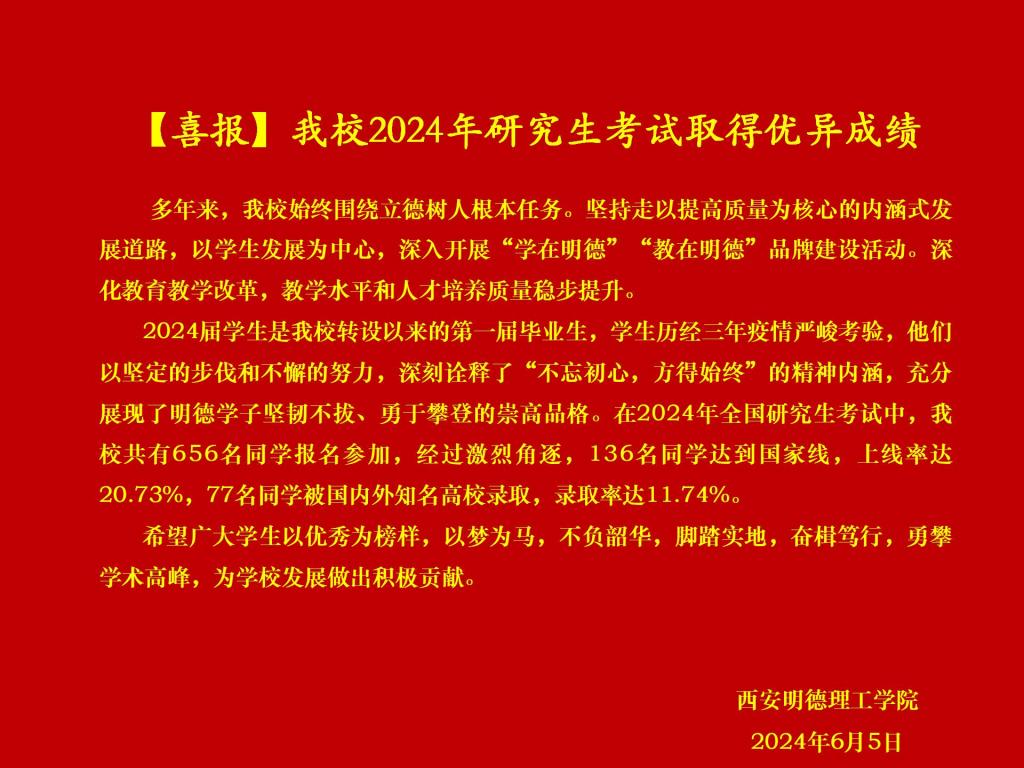 【喜报】我校2024届学生研究生考试取得优异成绩