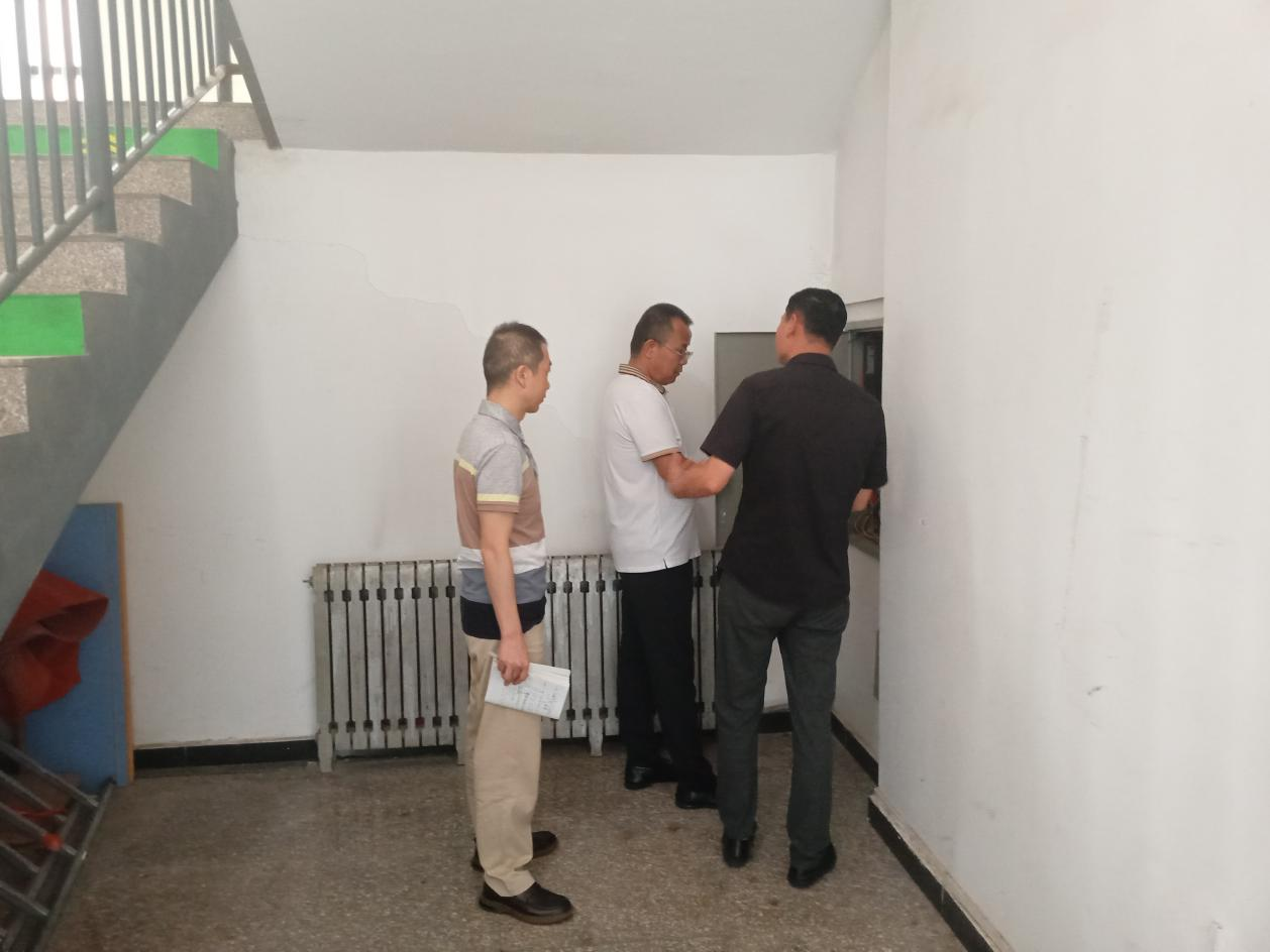 另一组由后勤管理处处长袁小勇负责,对办公楼、实训楼、教学楼及宿舍楼进行了全面检查。检查组对楼宇内的消防设施、用电安全等进行了严格审查,要求楼宇管理人员切实履行安全管理职责,加强对学生用电安全的教育与管理,严防因违规使用电器、私拉乱接电线等行为导致的安全事故。