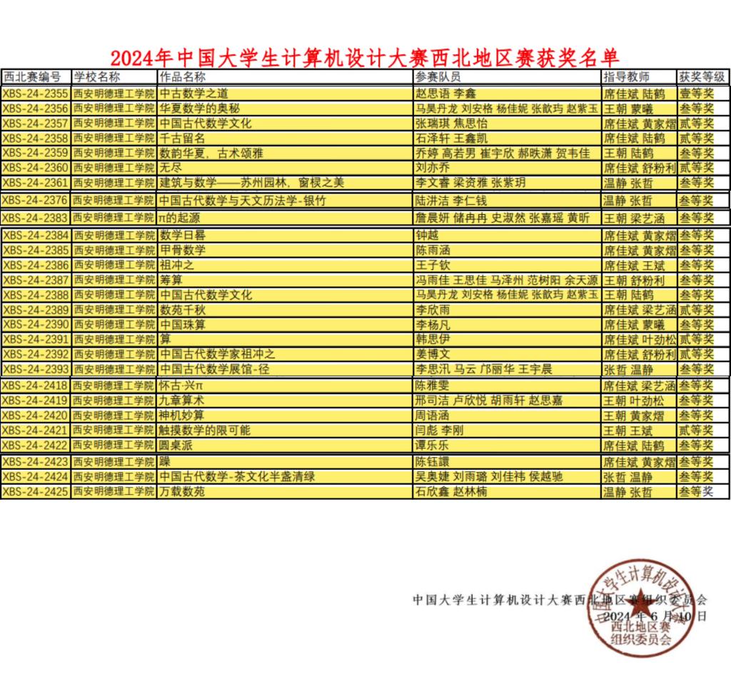 近日,2024年(第17届)中国大学生计算机设计大赛西北地区赛结果揭晓,我校此次共提交88组作品,高等职业技术学院广告艺术设计、室内艺术设计专业分别提交作品22项、5项,全部获奖,其中广告艺术设计专业参赛作品获一等奖1项、二等奖7项、三等奖14项,室内艺术设计专业参赛作品获三等奖5项。