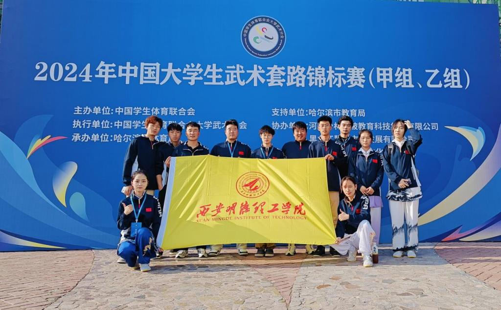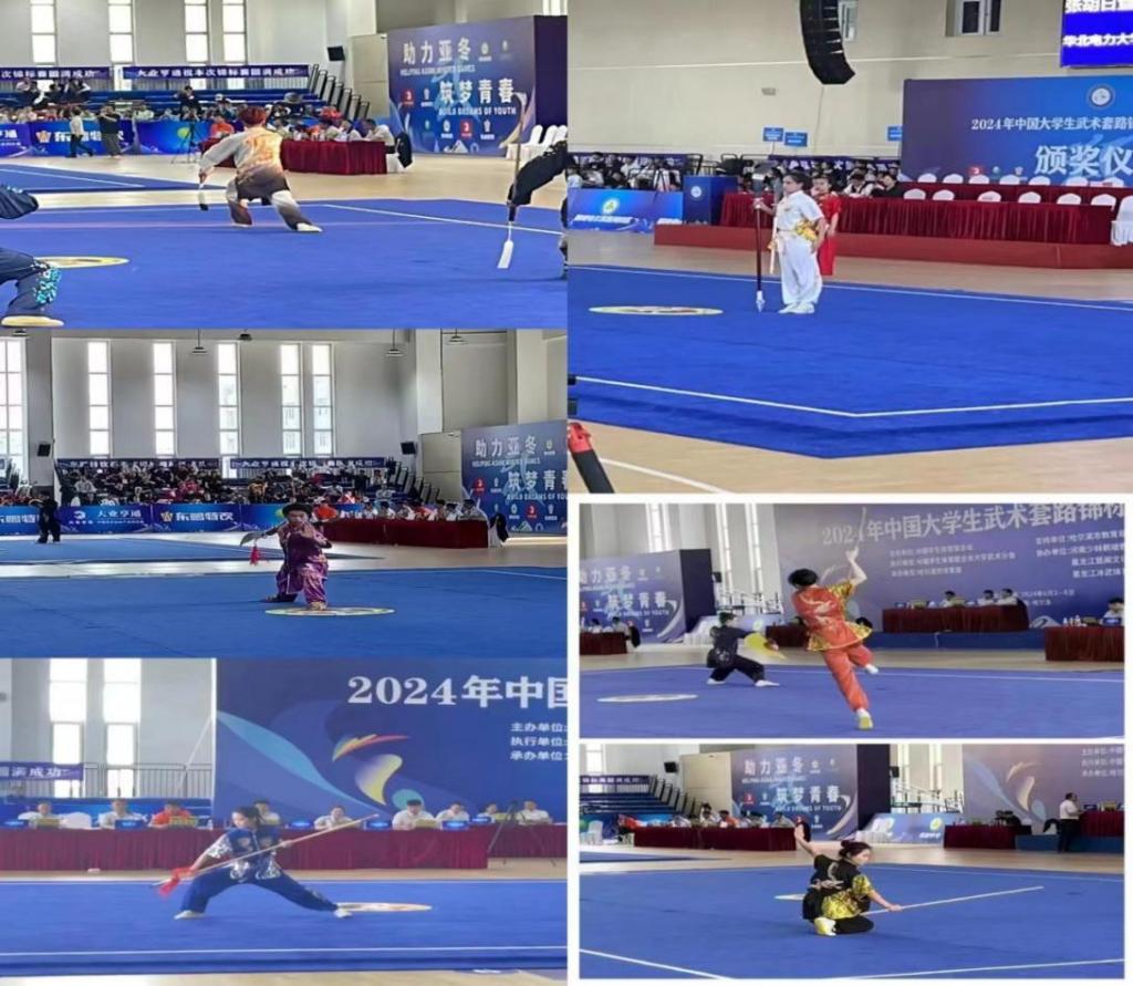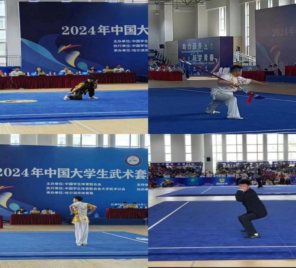 6月2日—6月9日,2024年中国大学生武术套路锦标赛在哈尔滨华德学院体育馆举行,来自全国的256支队伍2000余名运动员在这里上演一场“武林盛宴”。我校通识教育学院体育教研室李鑫、孙鹏老师带领校武术训练队10名学生参加此次比赛。