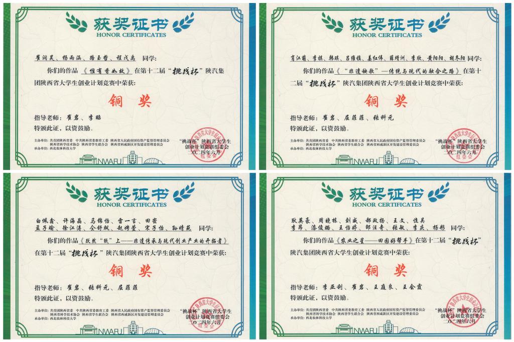 近期,由团陕西省委、省委教育工委等单位共同主办的第十二届“挑战杯”陕汽集团陕西省大学生创业计划竞赛圆满结束,我校共报送13个项目,其中4个项目荣获省级铜奖,创历年获奖项目数量新高。
