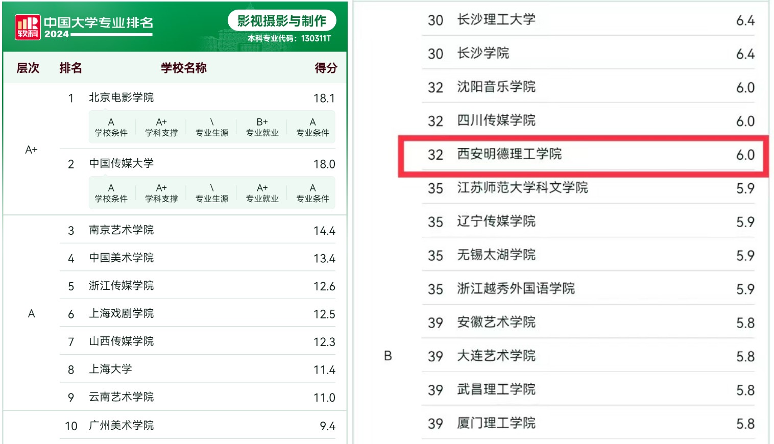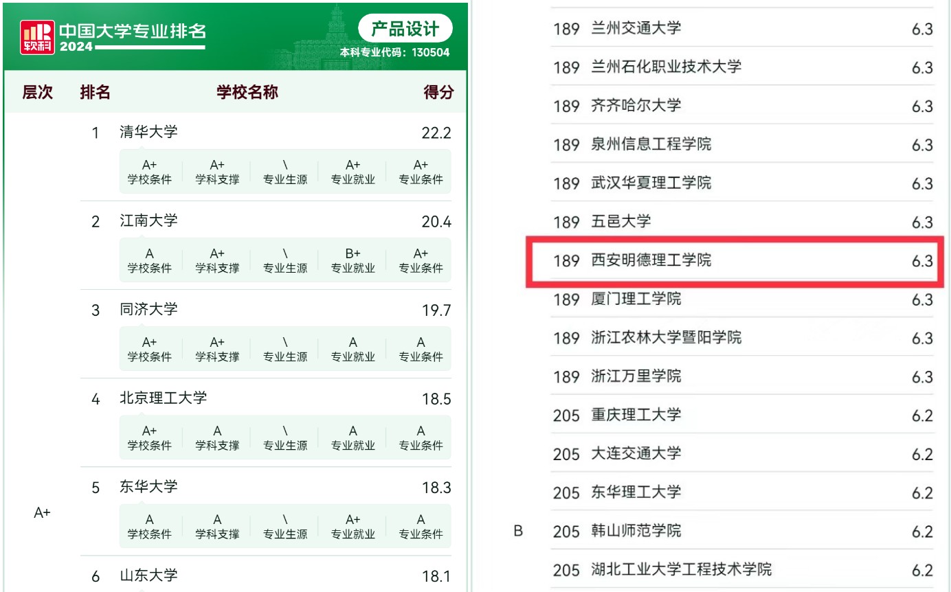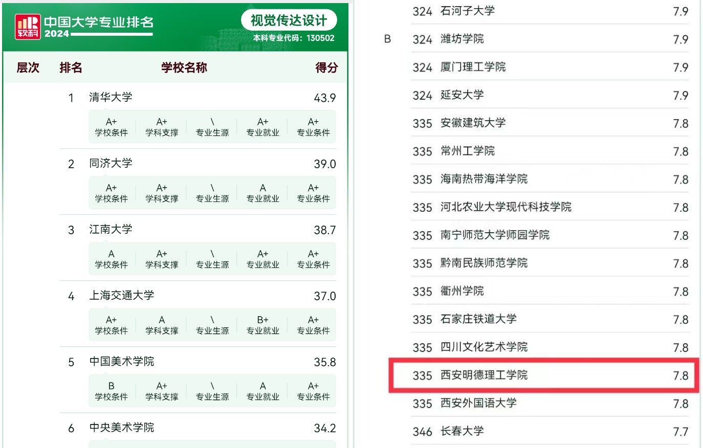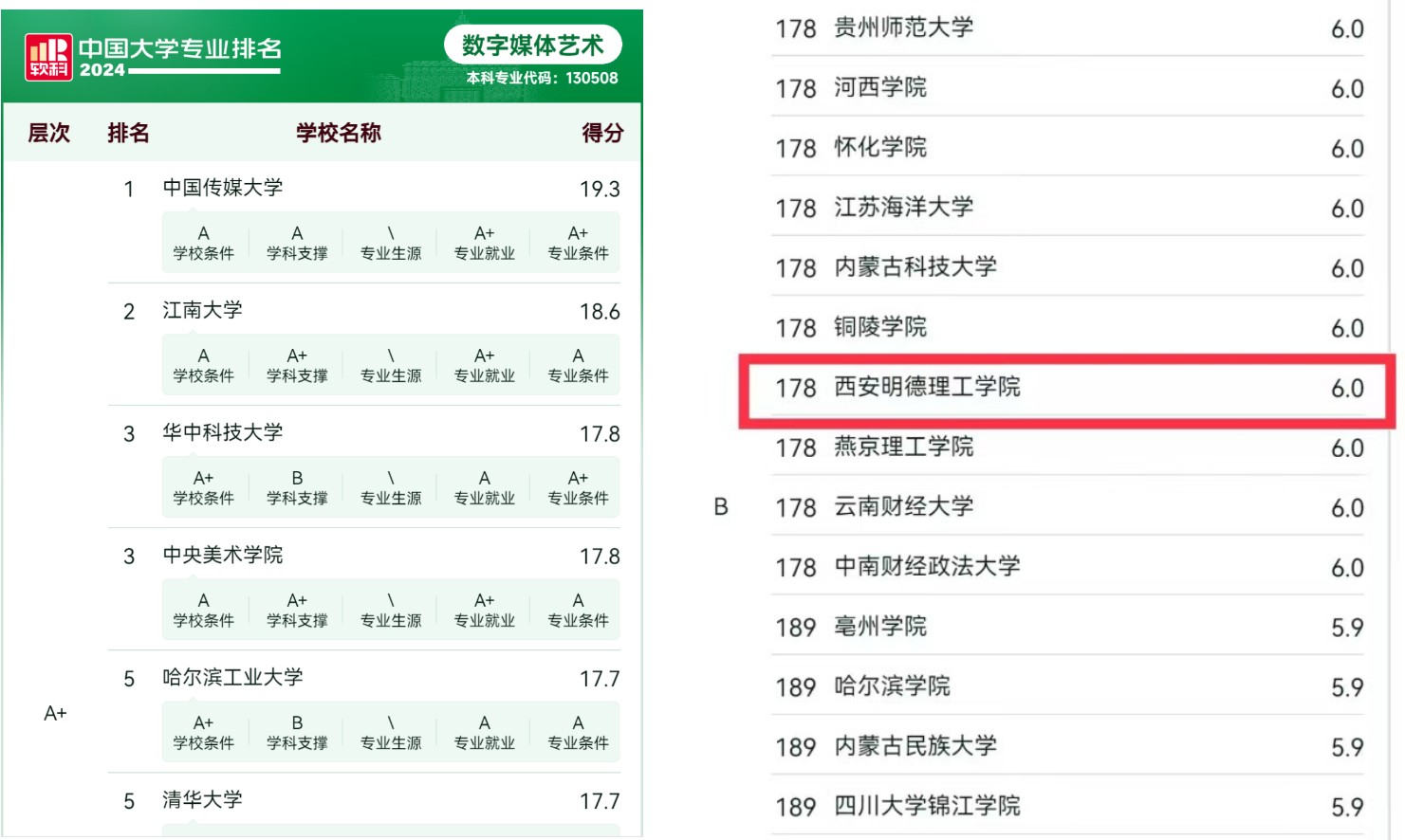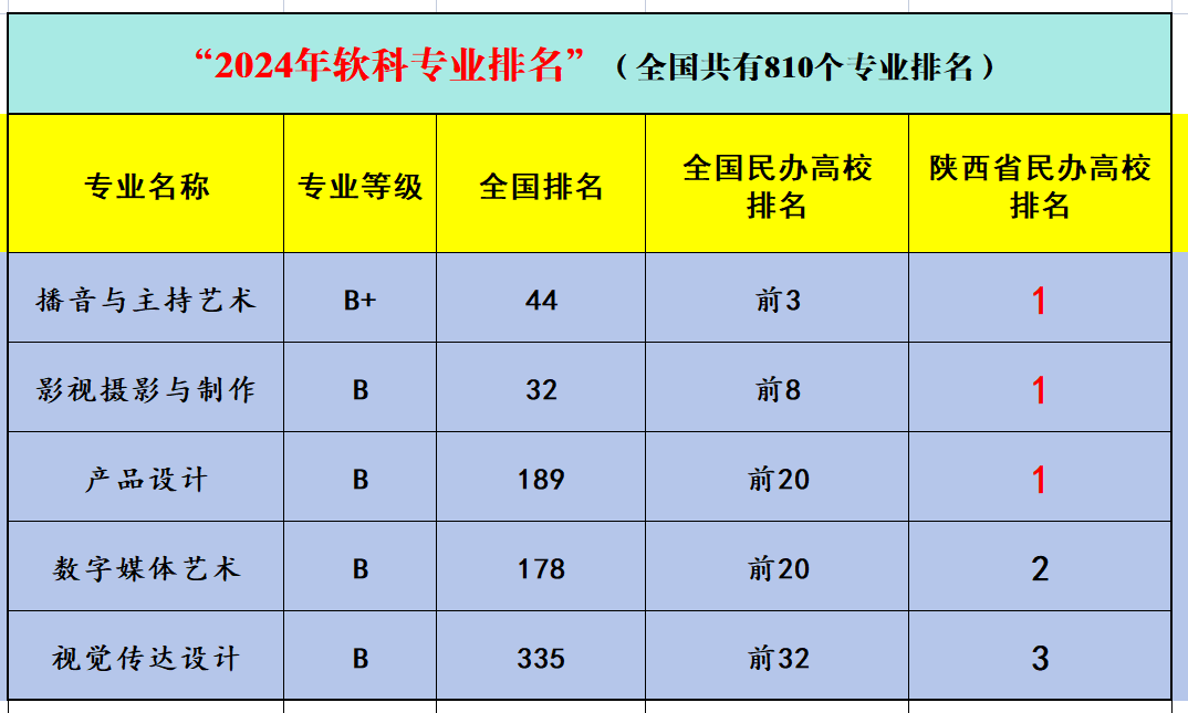 2024年6月13日,高等教育专业评价机构上海软科正式发布了“2024软科中国大学专业排名”,我校本科专业建设取得新突破,艺术与设计学院五个艺术类专业全部上榜“2024软科排名”,三个专业位居陕西民办院校第一名!